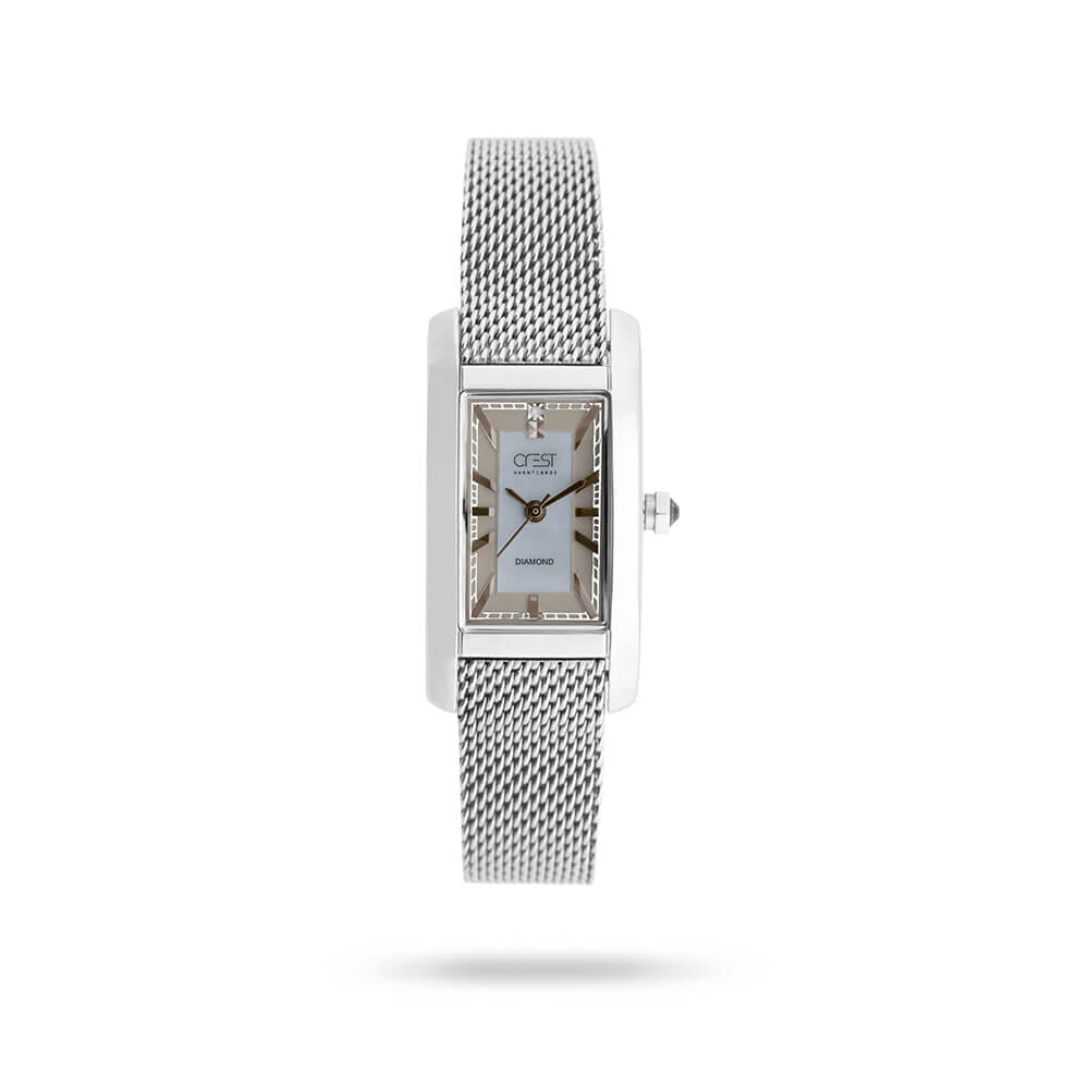 ساعت زنانه Crest مدل 4-6337، مدل 4-6337 وقتی ظرافت در فرم و درخشش در رنگ معنا می گیرد. ترکیبی از طراحی کلاسیک و نگاهی مدرن، بدنه مستطیلی با درخشش ملایم، روی مچ دست می نشیند و بی صدا می درخشد. بند استیل حصیری ، لطیف و سبک، در کنار صفحه ای مینیمال با نشانگرهای ظریف، تصویری از وقار زنانه در نهایت سادگی ست. یک نگین کوچک یک امضای بزرگ. این مدل برای بانوانی ست که جزئیات را زندگی می کنند و در هر لحظه، زیبایی را انتخاب می کنند.
