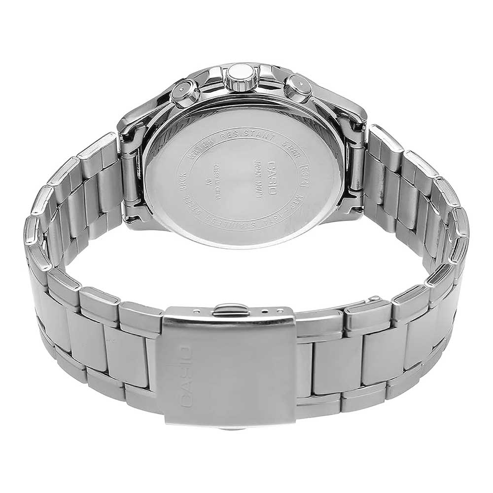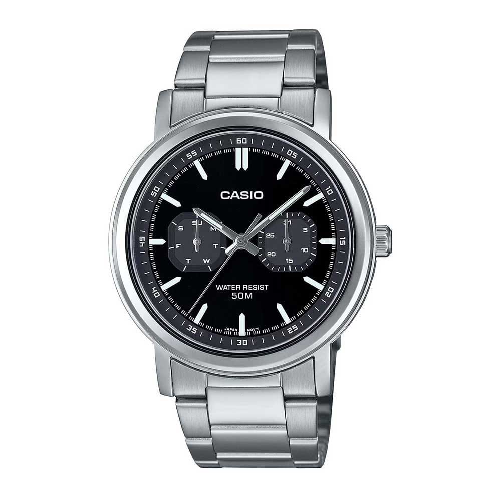 ساعت مردانه کاسیو MTP-E335D-1E، بند استیل نقره ای با کیفیت، بدنه استیل نقره ای، با قفل کلیپسی ایمن و مقاوم، صفحه مشکی با نمایشگر تاریخ،روزهای هفته، یک انتخاب بی نظیر برای آقایان است. کاسیو انتخابی محبوب در بین همه سنین و همه سلیقه ها. دارای گارانتی شرکتی می باشد.