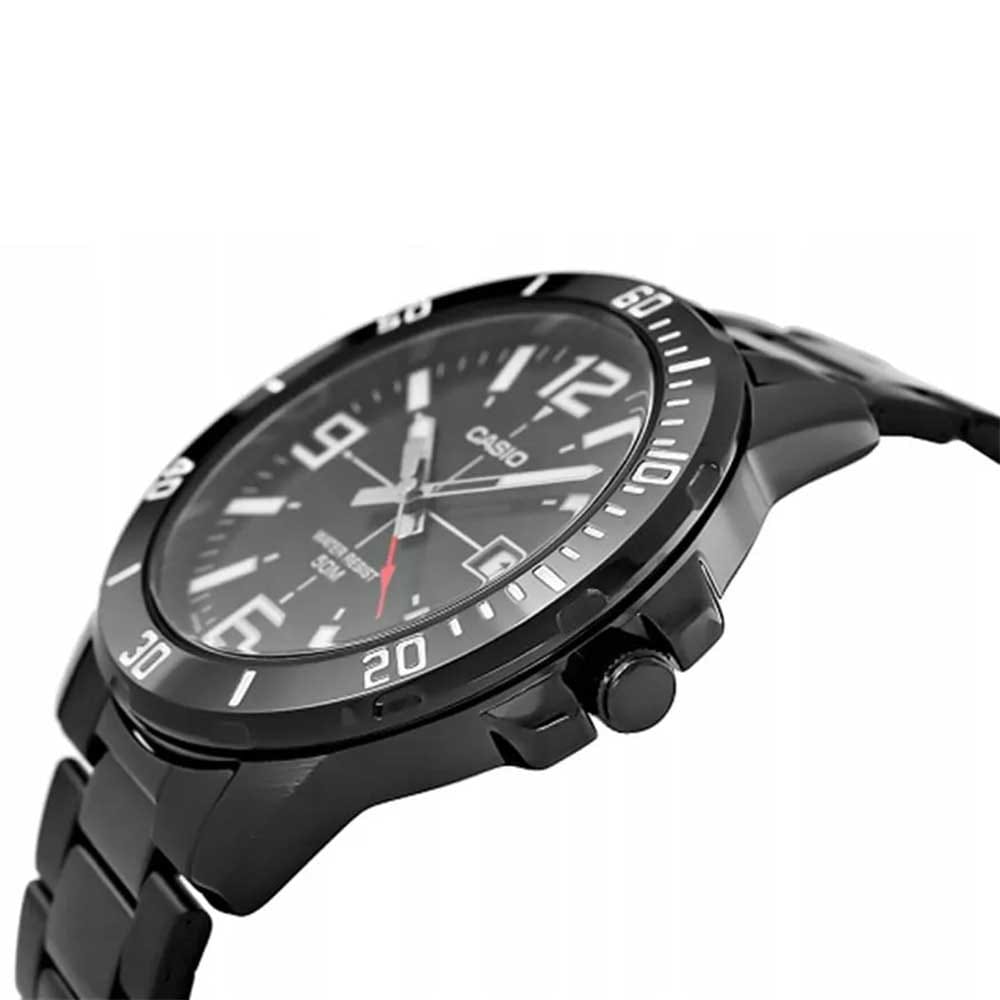 ساعت مردانه کاسیو MTP-VD01B-1B، بند استیل با کیفیت مشکی، با قفل کلیپسی ضامن دار ایمن برای استحکام بیشتر ساعت، نمایش تاریخ و موتور کوارتز دقیق، یک انتخاب اقتصادی و کارآمد برای افرادی است که به دنبال ساعتی ساده و عملی برای استفاده روزانه هستند.