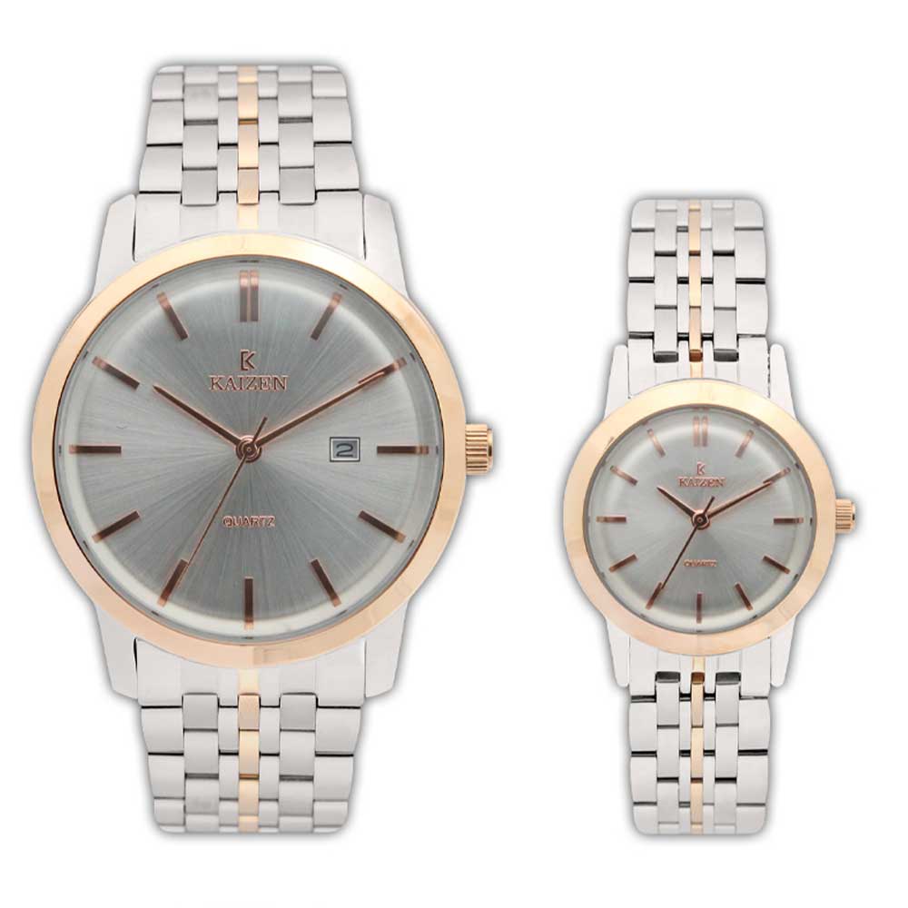 ست ساعت مچی زنانه و مردانه کایزن Kaizen 3302F رنگ رزنقره ای سیلور