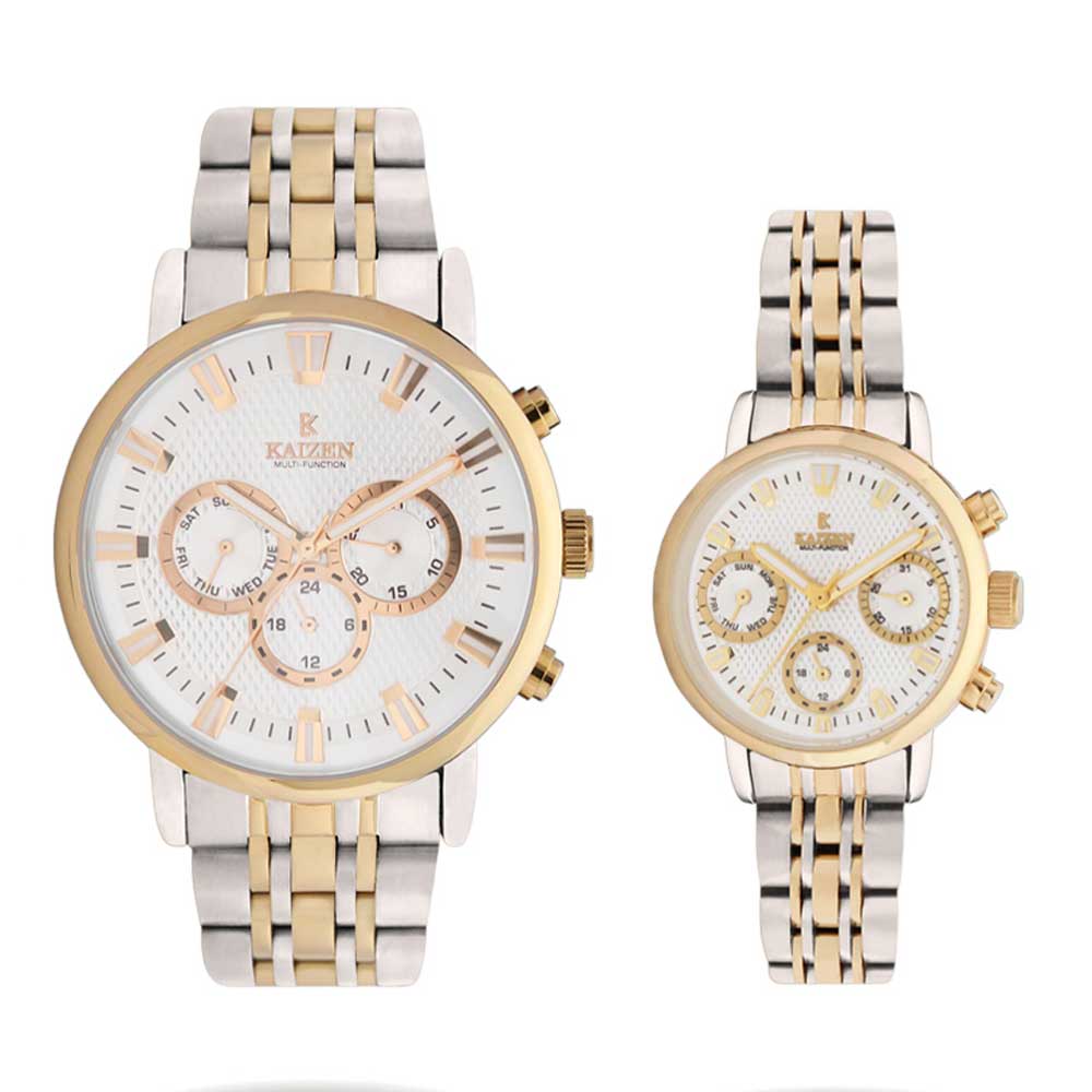 ست ساعت مچی زنانه و مردانه کایزن Kaizen 3500A رنگ طلایی نقره ای سفید