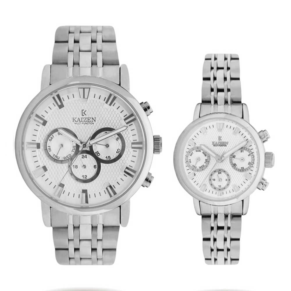 ست ساعت مچی زنانه و مردانه کایزن Kaizen 3500B رنگ نقره ای سفید